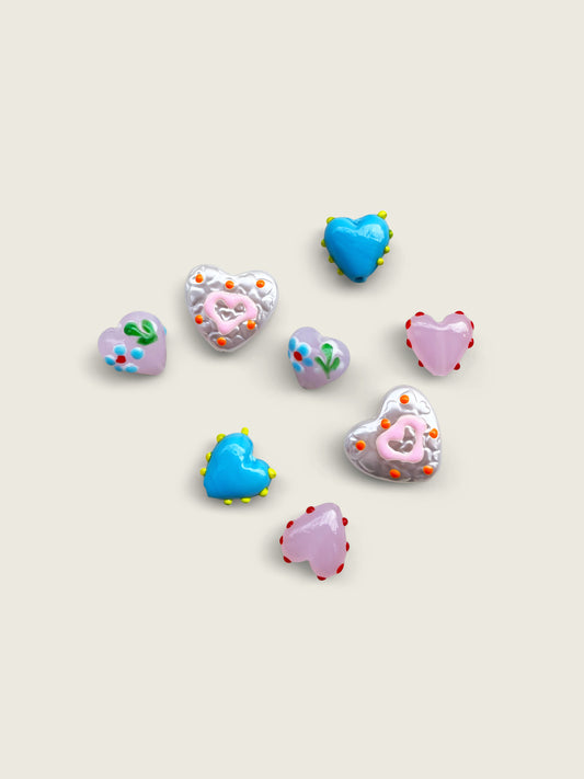 Ръчно рисувано акрилно мънисто със сърце