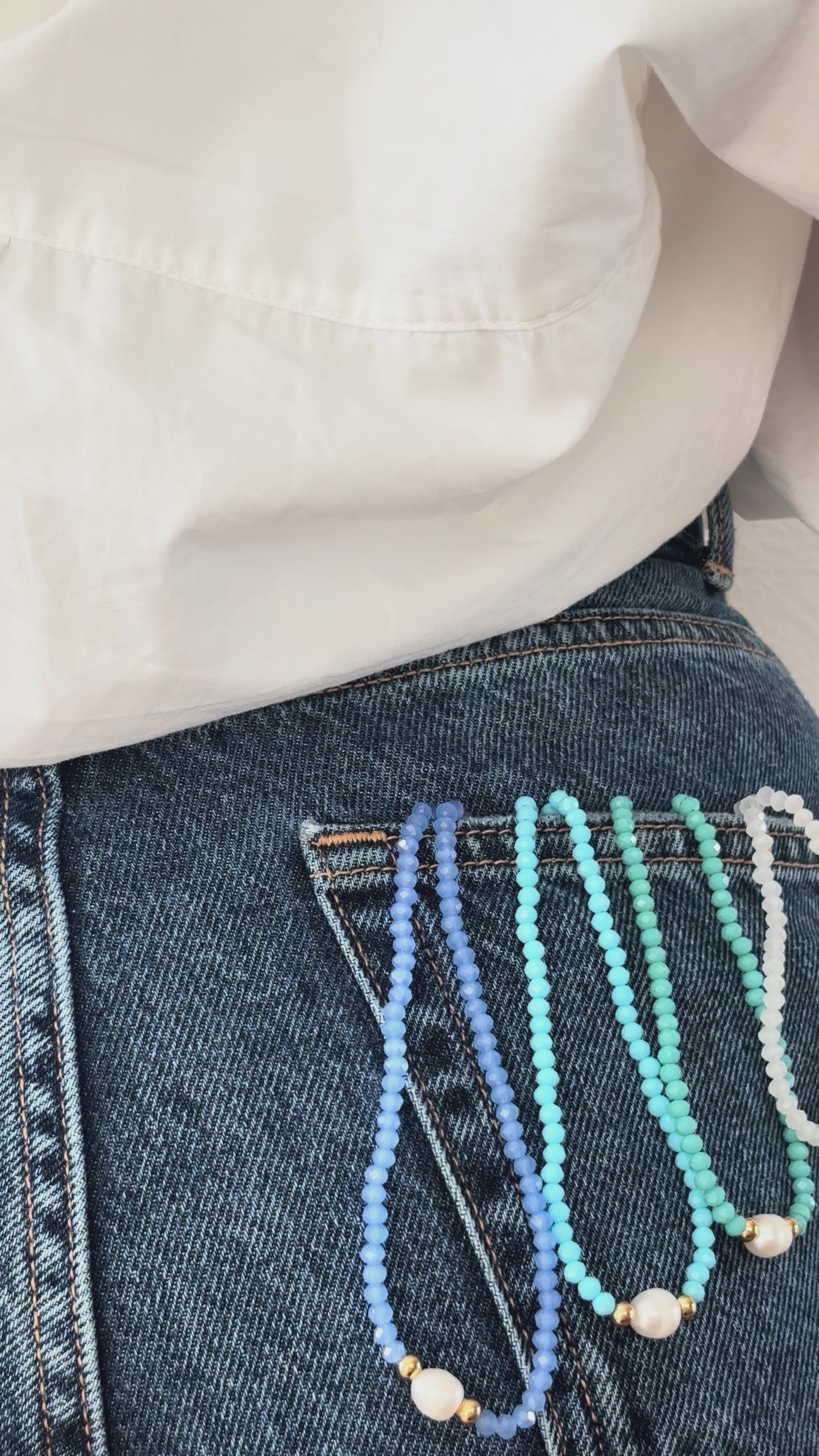 Добавете нотка лятна свежест и елегантност към визията си с това ръчно изработено колие. Комбинацията от фасетирани смолни мъниста, лъскава сърцевина от неръждаема стомана и изискано 18-каратово златно покритие прави това бижу перфектният ежедневен спътник - независимо дали се носи самостоятелно или на пластове.