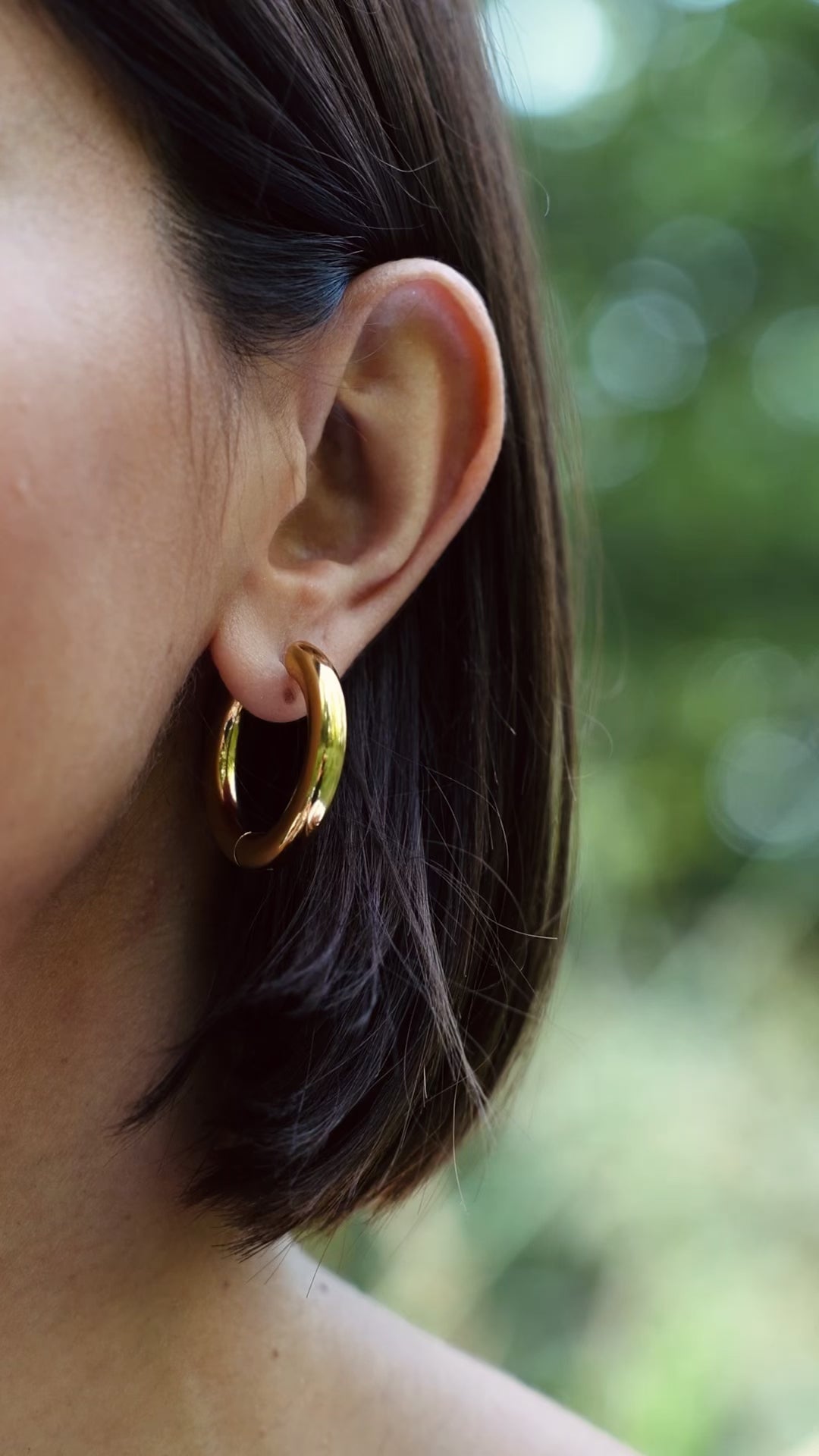 Обръчите Statement Hoops са перфектният аксесоар за всеки, който иска да направи смело изявление. Изработени от висококачествена неръждаема стомана с 18-каратово златно PVD покритие, те съчетават луксозен блясък с модерен дизайн. Тяхната впечатляваща, обемна форма ги прави истински привличащи вниманието – независимо дали са за ежедневно носене, в офиса или за специални поводи.