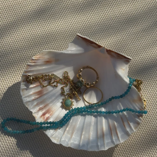 Die Blue Reef Halskette bringt das strahlende Blau tropischer Ozeane direkt in deinen Alltag. Gefertigt aus facettierten Naturstein-Perlen mit zartem Glanz, verleiht sie jedem Look eine frische, sommerliche Note. Die filigranen Steine sind auf langlebigem 316L Edelstahl verarbeitet – hautfreundlich, wasserfest und ideal für den täglichen Gebrauch.